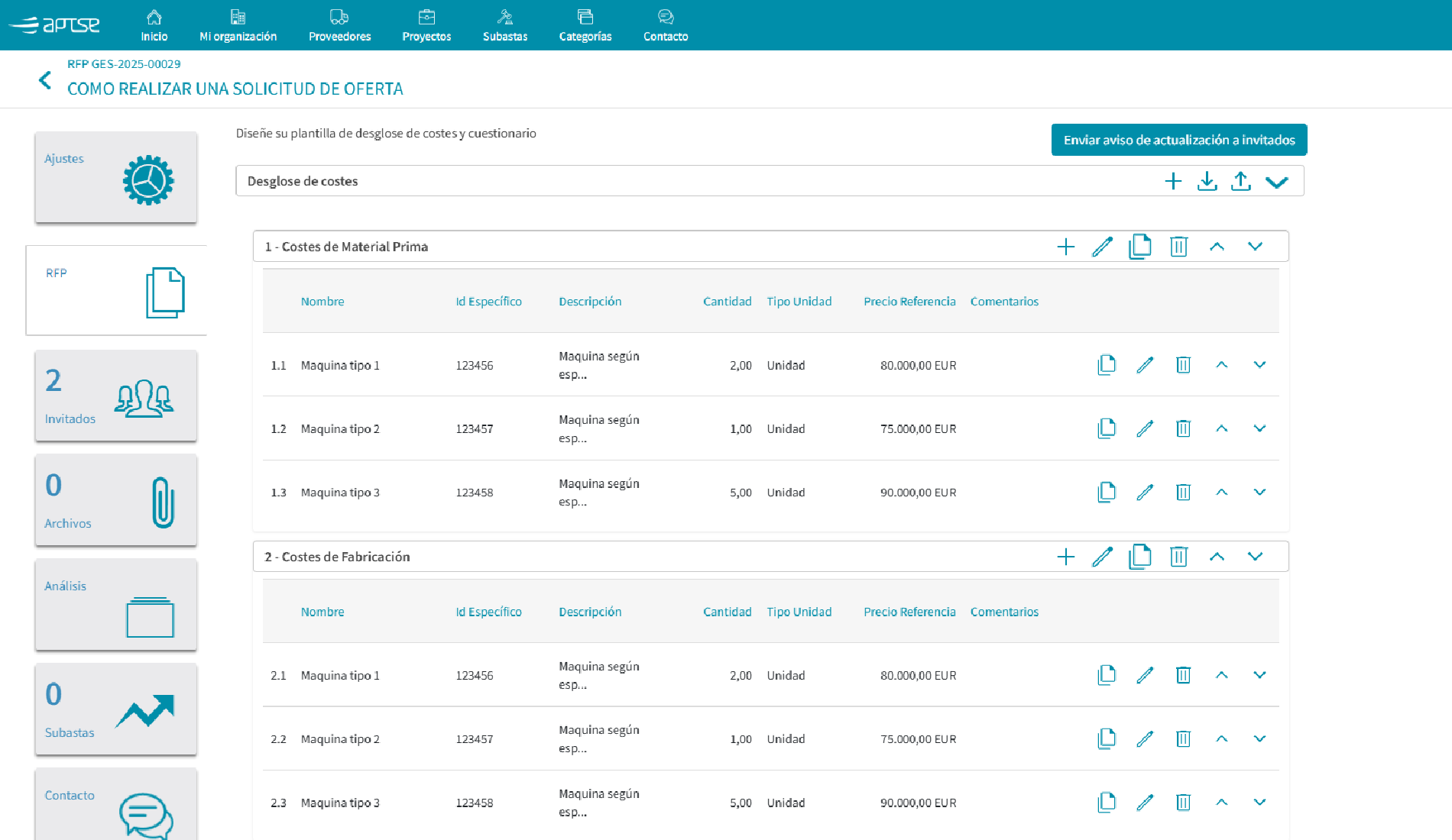 Gestiona tus RFQ desde una única plataforma SaaS. APTSE automatiza el envío, recepción y comparación de ofertas, reduciendo tiempos y mejorando la trazabilidad de tus procesos de compras B2B.